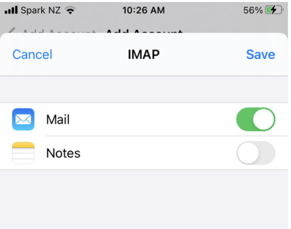 Check that Mail is activated and click Save to verify and setup the account.