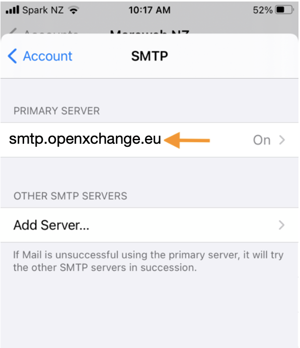 After clicking on SMTP, click on smtp.openxchange.eu.