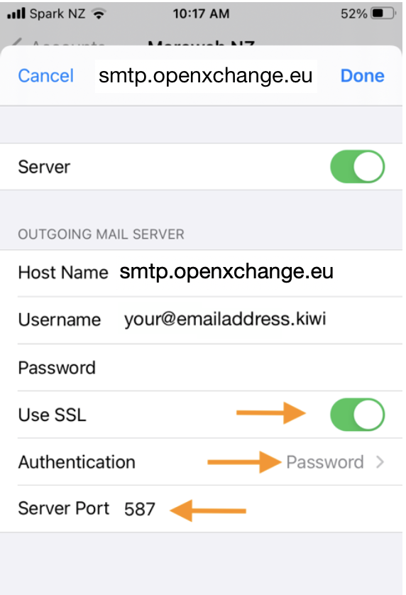 Outgoing Mail Server (SMTP):