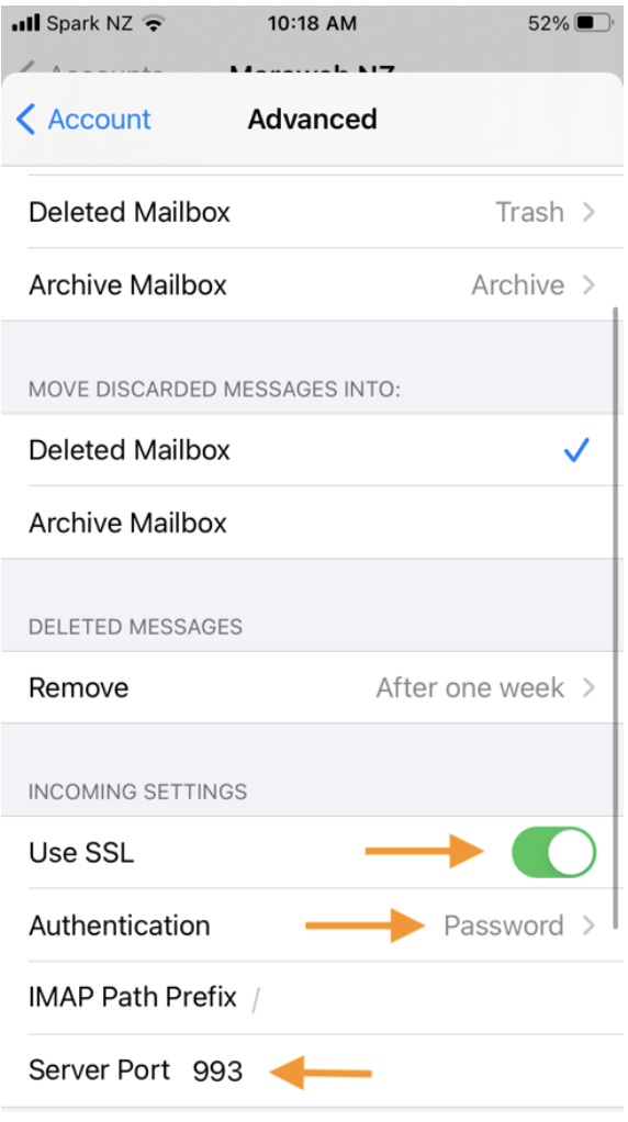 - Server port is 993